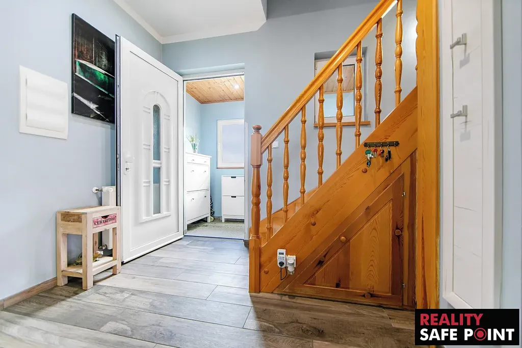 - vstupní chodba navazující na menší předsíň se schodištěm do patra, vstupem do sklepa a hlavní chodbou se vstupy do jednotlivých místností