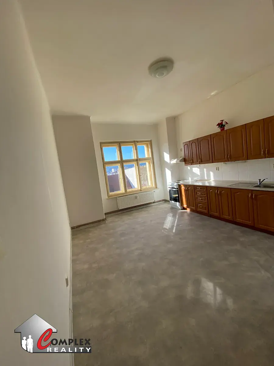 Pronájem slunného bytu 2kk o užitné ploše 53 m2. Bytová jednotka se nachází v 2.p. bytového domu na Horním náměstí v ulici 28. Října v Jablonci nad Nisou. Tento byt nabízí k užívání chodbu, pokoj s kuchyňským koutem - 21,06 m2, pokoj - 26,86 m2 a sprchový kout, jehož součástí je toaleta - 5,10 m2.
