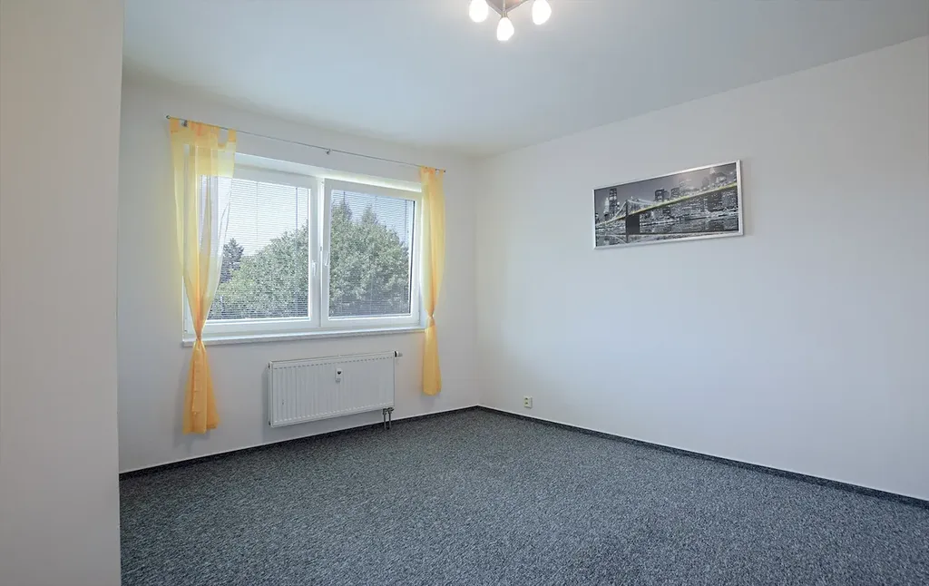 K dispozici je vstupní chodba, obývací pokoj s kuchyňským koutem včetně kuchyňské linky a spotřebičů, ložnice, koupelna s rohovou vanou a WC. Z ložnice je vstup na lodžii s výhledem do okolí. V pokojích je plovoucí podlaha + koberec, v koupelně, kuchyňském koutě a na chodbě dlažba. K bytu patří také sklep.