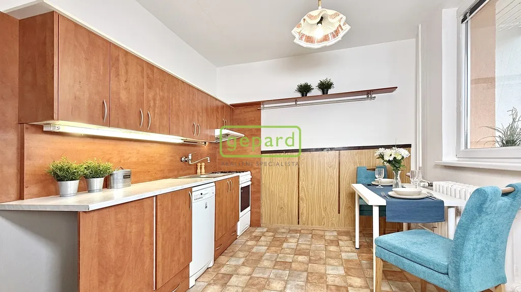 Dispozice 2+1 poskytuje praktické a funkční uspořádání místností a je navíc doplněna o velkou šatnu, která výrazně zvyšuje komfort bydlení a elegantně řeší dostatek úložného prostoru. Byt má zděné jádro. V koupelně se nachází zrekonstruovaný sprchový kout. Kuchyňská linka je vybavena myčkou, plynovým sporákem a el. troubou.