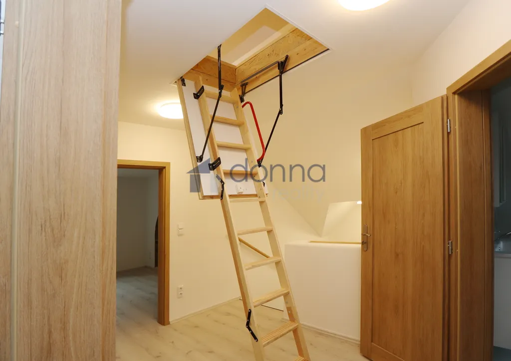Nabízíme pronájem nově zrekonstruovaného podkrovního bytu 4+kk, plocha 71m2 + podkroví 23m2, s předzahrádkou 63m2, v 1. patře rodinného domu, ulice V Nových Bohnicích, Praha 8 - Bohnice.