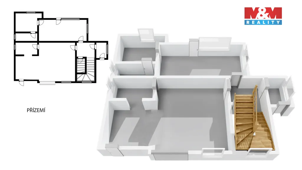 Přízemí o dispozici 2+kk je v dobrém stavu, prostor lze předělat dle vlastních představ. Ať už jako samostatnou bytovou jednotku, zázemí pro podnikání, pracovnu, nebo bydlení pro rodiče.