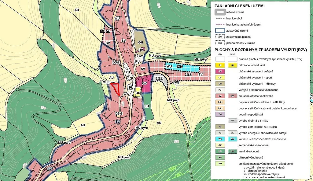 Dle územního plánu se jedná o plochu SV - smíšená obytná venkovská.