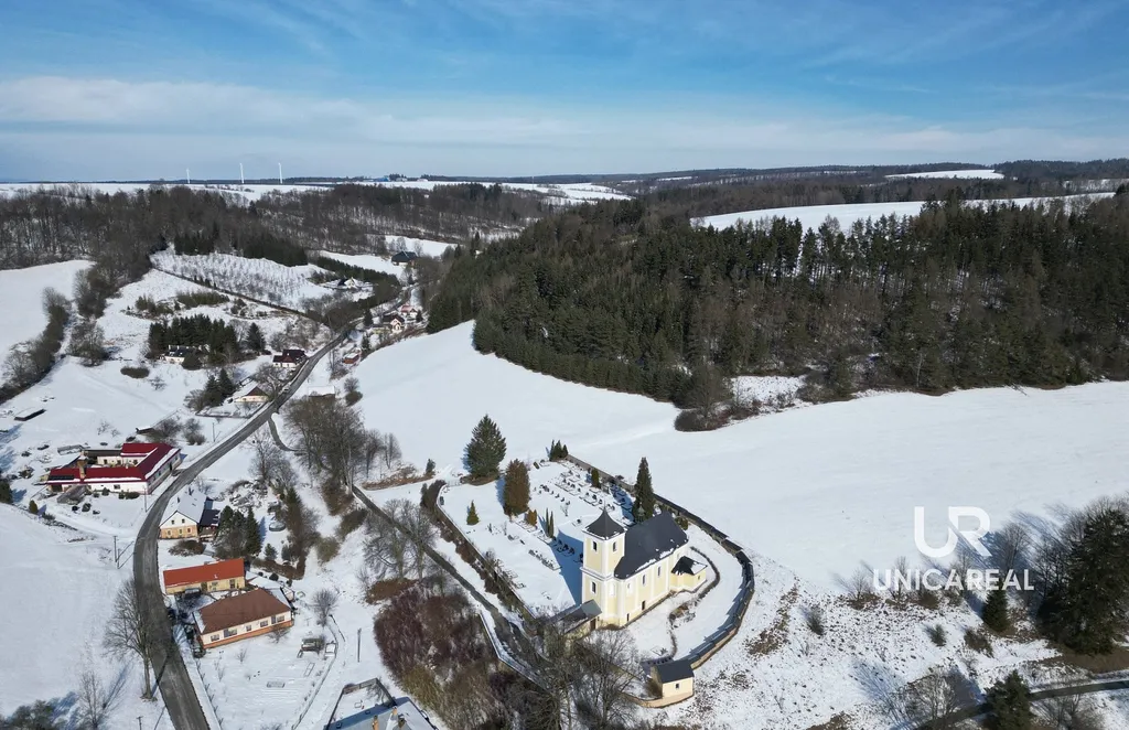 Z pozemku je nádherný výhled na barokní farní kostel sv. Mikuláše z roku 1759