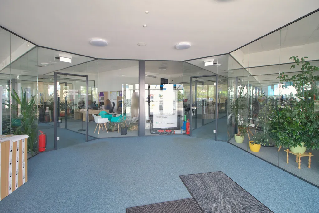 Kancelářské prostory se nacházejí v přízemí a jsou rozděleny na jednotlivé kanceláře moderními skleněnými příčkami. Vytápění je podlahové. Automatický systém Loxone ovládá topení, řídí žaluzie, osvětlení i audio. Pro každou kancelář je možné individuální nastavení. Objekt je elektronicky zabezpečen a napojen na PCO.