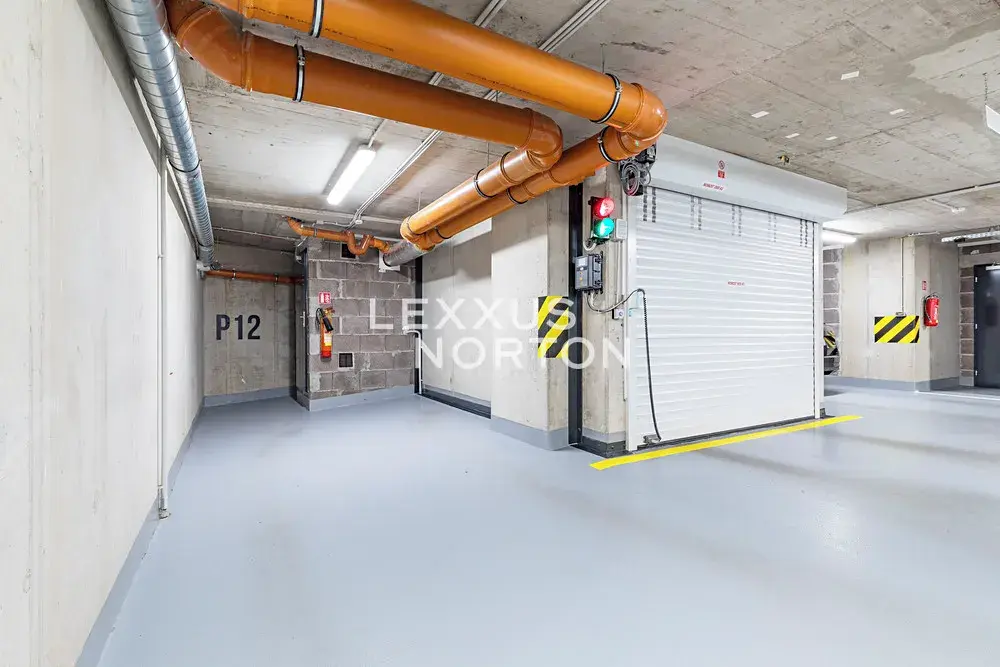 Parkovací stání se nachází ve 2. podzemním podlaží a je ihned k dispozici. Přístup je zajištěn autovýtahem s nosností 3 000 kg. Vjezd do garáže je přímo z ulice Tůmova a je zabezpečen dálkově ovládanými vraty.