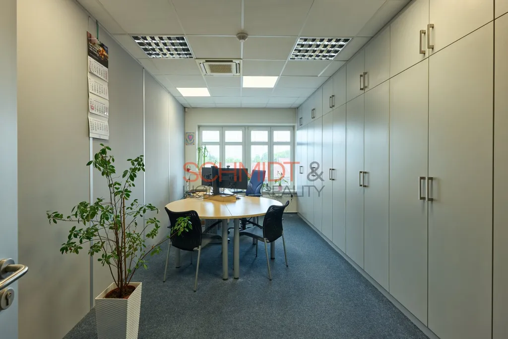 Nabízíme k pronájmu moderní a plně vybavený kancelářský prostor o rozměrech 15,5 m² situovaný ve druhém nadzemním podlaží administrativní budovy na adrese Herbenova 869/42 Hustopeče. Ke kanceláři lze využívat společný prostor vybavený barem, zasedací místností, archívem, šatnou, serverovnu a toaletami. Součástí pronájmu je vybavení viditelné na fotografiích, dále jedno parkovací místo. Prostory jsou přístupné z centrálního schodiště či z výtahu. Budova i vybavení - vše je v pečlivě udržovaném stavu, a je součástí uzavřeného areálu. Prostory jsou chráněny zabezpečovacím systémem a systémem požární signalizace. O venkovní prostory se stará bezpečnostní agentura. V patře se nachází vícero samostatných kanceláří, energie se budou rozpočítávat podle m². Vodné a stočné je zahrnuto v nájmu.