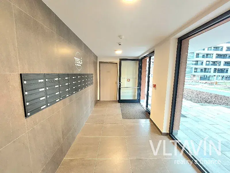 Exkluzivně Vám nabízíme k pronájmu zcela novou bytovou jednotku o dispozici 2+kk, s užitnou plochou 53 m2 nacházející se ve 2. nadzemním podlaží v rezidenčním projektu Tesla Hloubětín, který se nachází v atraktivní lokalitě Prahy 9 - Hloubětín, přímo u tramvajové zastávky. Projekt je navržen v moderním stylu a ve vysokém standardu a nabízí budoucím nájemcům komfortní bydlení. Byt tvoří vstupní chodba, která má po celé své délce zabudovanou vestavěnou skříň, jenž nabízí nadstandardní úložný prostor, dále z technické místnosti ( komory ), ve které je příprava na pračku, koupelny, obývacího pokoje s kuchyňským koutem a ložnice. Lodžie je přístupná z obou pokojů a nabízí výhled do klidného vnitrobloku. Okna jsou osazena elektricky ovládanými roletami.
