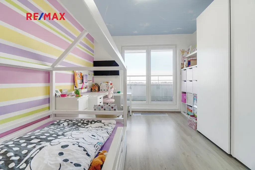 Dispozici tvoří obývací pokoj s kuchyňským koutem vybaveným vestavěnými spotřebiči a se vstupem na terasu. Prostorná ložnice rovněž nabízí vstup na terasu a další místností je útulný dětský pokoj, který může sloužit i jako pracovna. Součástí bytu je také koupelna s dvojumyvadlem a sprchovým koutem, samostatná toaleta a úložná komora na pračku a sušičku s praktickým úložným systémem. K bytu náleží garážové stání pro pohodlné a bezpečné parkování a také prostorný sklep jako další místo pro uložení vašich věcí.