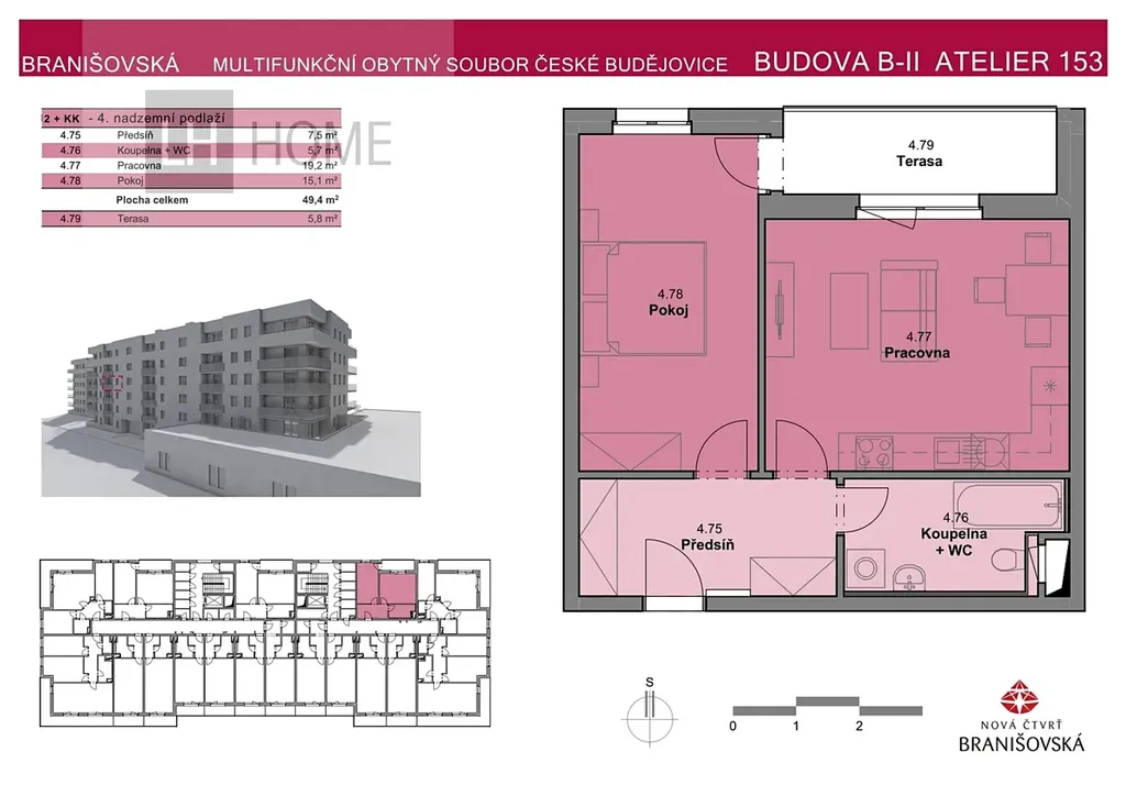Nabízíme prodej bytu 2+kk o výměře 49,40m² s balkonem 5,8 m² v moderním rezidenčním projektu Nová čtvrť Branišovská v Českých Budějovicích. Byt se bude nacházet v 4. nadzemním podlaží.