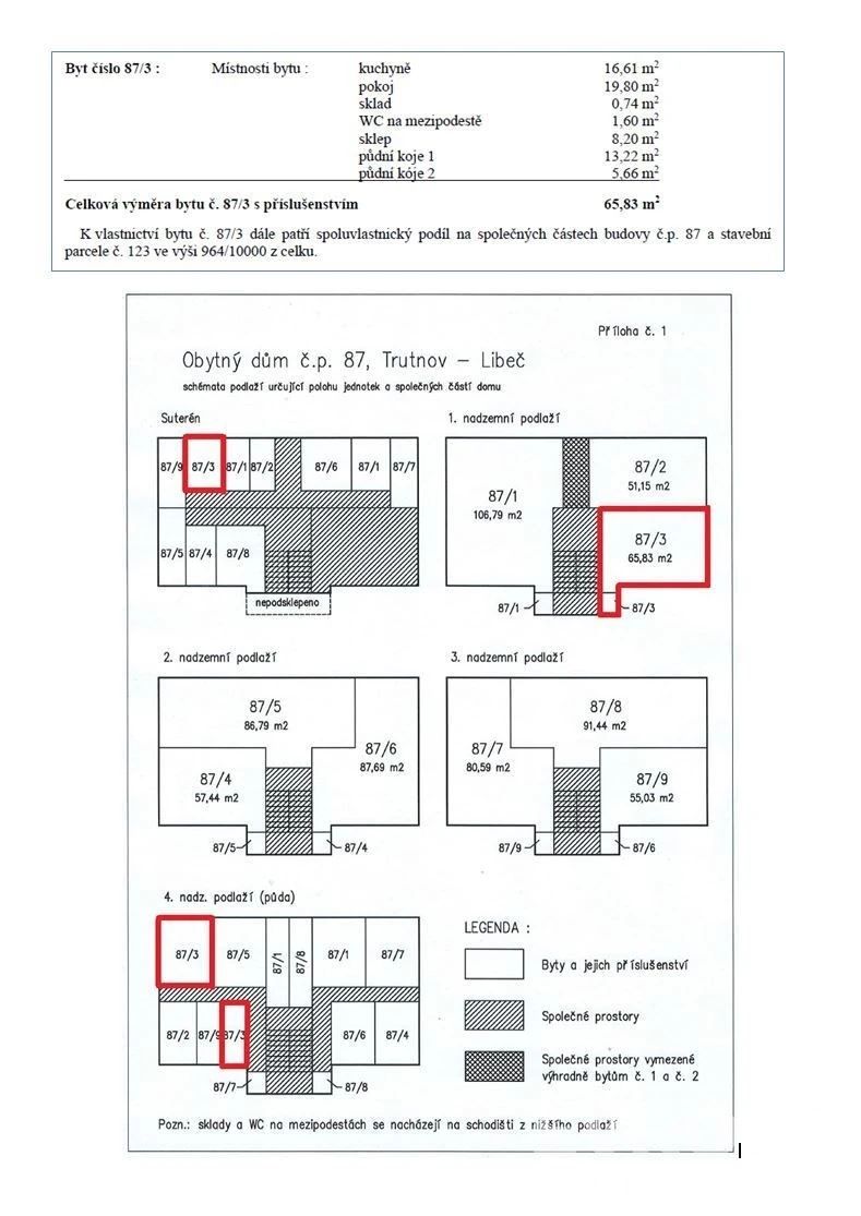 2x Půdní prostor (13,22 m2 a 5,66 m2)