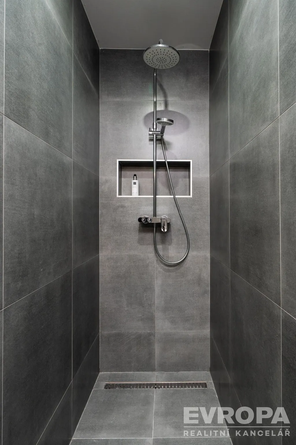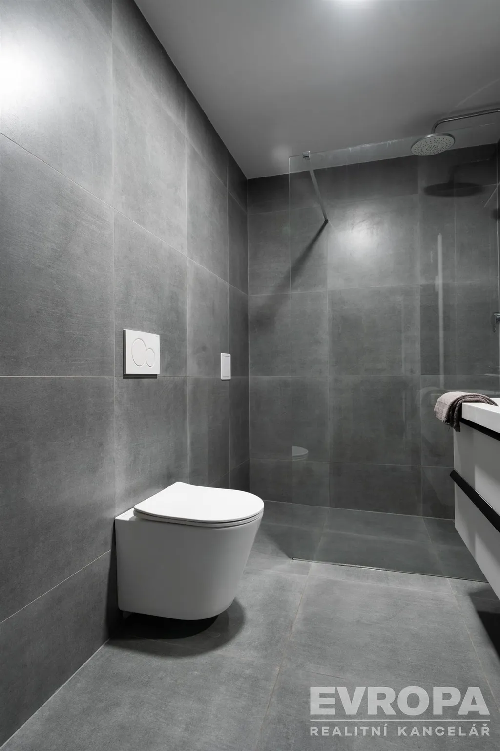 Za vstupními dveřmi je zádveří, ze kterého se vchází do koupelny se sprchovým koutem a toaletou, pokoje a chodby, která dále pokračuje do kuchyně spojené s obývacím pokojem a do dalšího pokoje (ložnice), ke kterému je samostatná plnohodnotná koupelna se sprchovým koutem a oddělenou toaletou. K bytu náleží prostorný sklep a dvě parkovací místa. Byt je po celkové rekonstrukci nové rozvody elektřiny vč. rozvaděče, rozvody vody i odpadů v plastu, dveřní obložky vč. dveří, nové podlahy (v zádveří, chodbě, koupelnách položena dlažba, v obytných místnostech kvalitní dřevěná podlaha). Součástí bytu je moderní kuchyňská linka vč. vestavěných spotřebičů (varná deska, el. trouba, myčka, vestavěná lednice s mrazákem). Okna jsou plastová s trojskly a směrují na severovýchod a jihovýchod. Součástí společných prostor domu je sušárna/kolárna. Za domem je k dispozici zázemí pro posezení / relaxaci.
