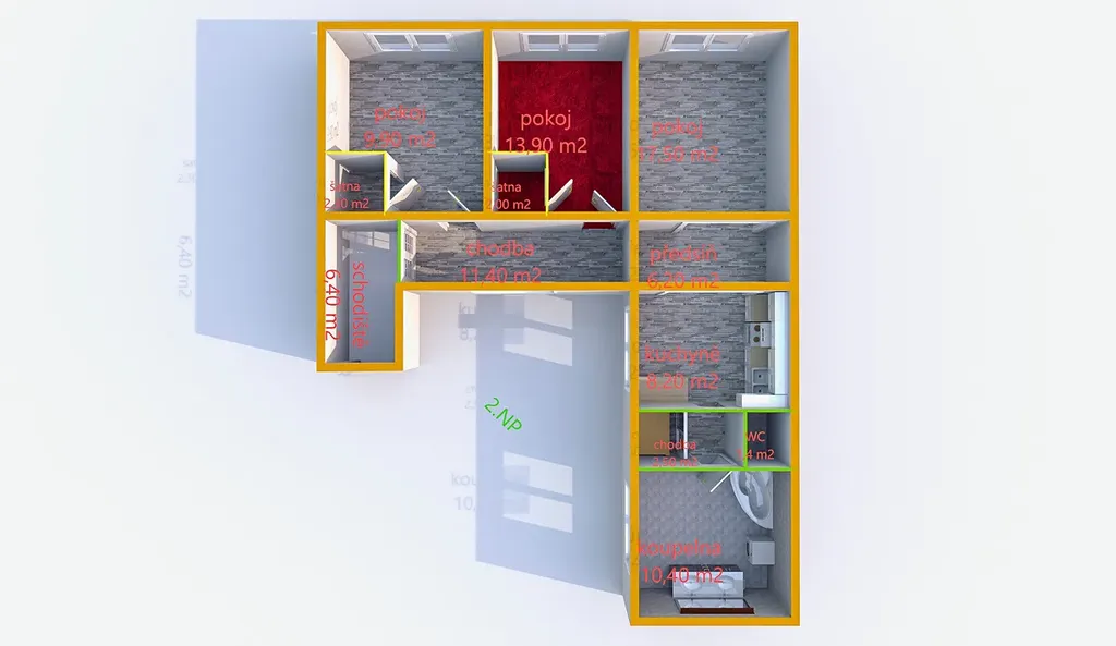 - ve dvou obývacích pokojích je šatna.