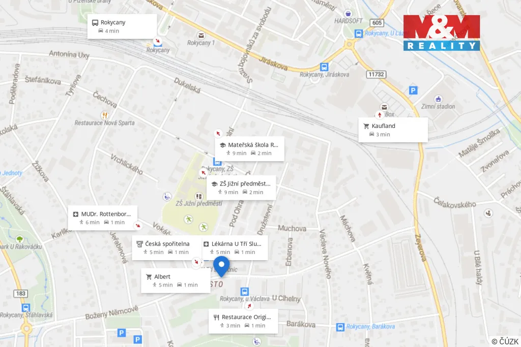 Stavebně-technický stav bytu: Byt prošel kompletní rekonstrukcí a je ve velmi dobrém technickém stavu. Byly provedeny nové rozvody elektroinstalace (220 V i 380 V), nové vodovodní rozvody a samostatná plynová přípojka pro byt. Vytápění je řešeno samostatně plynem – kamna s ohřevem vody, doplněno krbovými kamny s vyvložkováním komínem. Kompletně zateplený strop bytu přispívá ke snížení tepelných ztrát. Byt má nové bytové jádro a novou koupelnu s keramickými obklady a dlažbou. Podlahy tvoří kombinace parket, dřevěné podlahy, vinylu a keramické dlažby dle funkce místností. Stěny jsou kompletně upravené sádrovými omítkami. Kuchyňská část je částečně vybavena – kuchyňská linka, indukční varná deska a myčka nádobí. V předsíni jsou realizovány nové vestavěné úložné prostory. Objekt je ve velmi dobrém udržovaném stavu, se střechou z pálených tašek a standardně udržovanými společnými prostory. Parkování je možné na ulici i ve vnitrobloku domu. Nemovitost se nachází v centrální části Rokycan