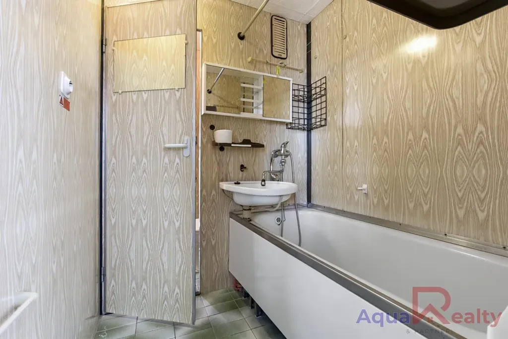 Interiér bytu je v původním, velmi udržovaném stavu, což představuje ideální příležitost pro modernizaci přesně podle představ nového majitele. Dispozice bytu nabízí obývací pokoj o výměře 16,30 m2, na který navazuje kuchyně o ploše 12,83 m2, ložnice o velikosti 12,10 m2 a další pokoj s výměrou 8,10 m2. Praktické zázemí tvoří předsíň o rozloze 8,16 m2, koupelna o ploše 3,21 m2 a samostatné WC o výměře 0,92 m2. V obytných místnostech jsou osazeny klasické dřevěné parkety, zatímco sociální zázemí je řešeno původním umakartovým jádrem s dekorem dřeva. K bytu náleží také sklepní prostor o výměře 2,09 m2 umístěný v suterénu. Celkové měsíční náklady na provoz bytu pro jednu osobu jsou velmi příznivé a činí 3 500 Kč pro jednu osobu, což zahrnuje fond oprav ve výši 1 571 Kč, zálohy na teplo, teplou a studenou vodu, úklid společných prostor, osvětlení a další poplatky spojené se správou domu.