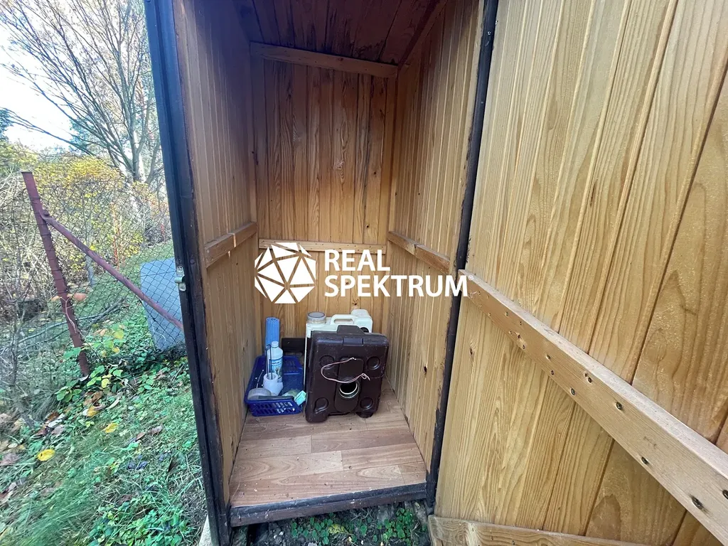 Na pozemku se nachází kůlna na nářadí a chemické WC.