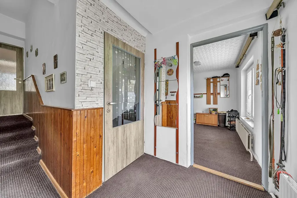 K prodeji je rodinný dům v klidné části obce Sázava, která svou zástavbou téměř bezprostředně navazuje na východní okraj města Lanškroun. Bezpečné propojení obcí zajišťuje cyklostezka. Jedná se o samostatně stojící, celopodsklepenou, jednopodlažní stavbu s využitým podkrovím pro bydlení. Dům se zahradou o výměře 674 m2 nabízí dostatečný prostor pro vícečlennou rodinu. Suterén tvoří technické zázemí domu, najdeme zde prostornou garáž, dílnu, kotelnu a sklep. Obytnou dispozici přízemí tvoří obývací pokoj, kuchyně s jídelnou, dvě ložnice, koupelna, toaleta, chodba a zádveří. Ze zádveří je přístupná šatna a po schodišti pak obytné podkroví, které nabízí jeden velkorysý a otevřený prostor aktuálně sloužící nejmladším členům rodiny. Podkroví se realizovalo v roce 2008 a v této době prošel dům částečnou, ale velmi důležitou rekonstrukcí (kuchyň, koupelna, výměna oken aj.). Vytápění domu zajišťuje kotel na tuhá paliva, popřípadě plynový kotel, ohřev vody bojler/kamna. Dům byl vystavěn v 80. letech 20. století, je udržovaný a v dobrém stavebně-technickém stavu. Bezpochyby nabízí bydlení se zázemím pro ženu doma a na zahradě a se zázemím pro muže v prostorné garáži a dílně, pro děti je celé podkroví. V obci se nachází obecní úřad, mateřská škola, prodejna potravin i fotbalové hřiště, v blízkosti obce najdete velké množství vyžití v zimních i letních měsících.