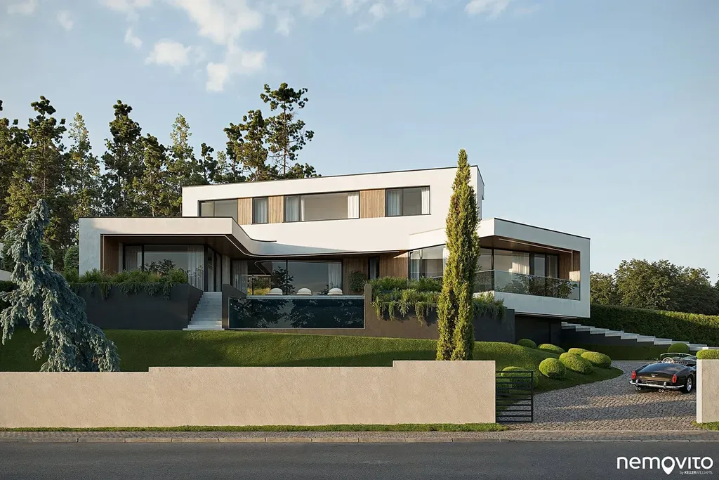 Návrh domu pracuje se zelenou střechou a maximálně respektuje ráz okolí. Ačkoliv je svými rozměry honosný, architektonickému studiu se podařilo objemnou stavbu navrhnout tak, aby po všech stránkách zapadala. Svůj podíl na tom nese také svažitý pozemek, který byl podmínkou zadání.