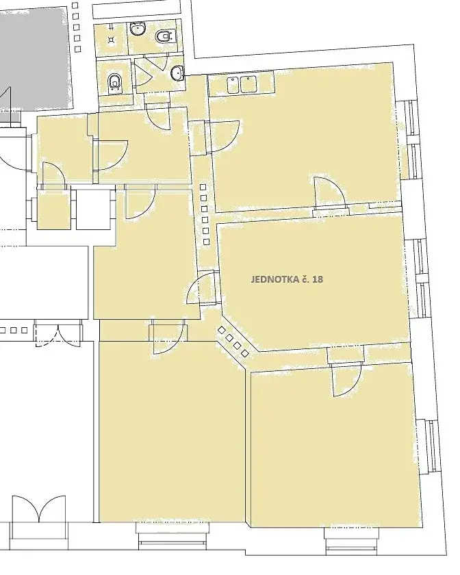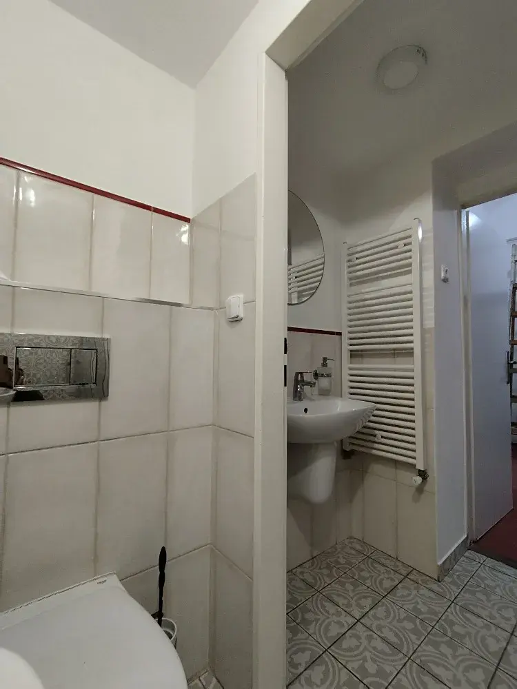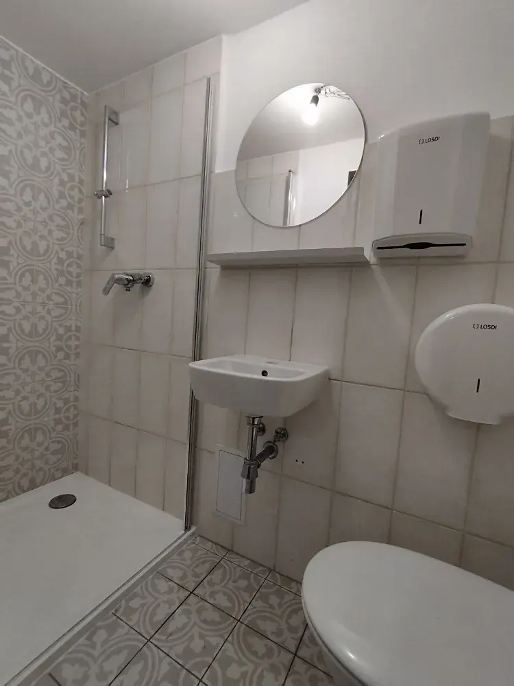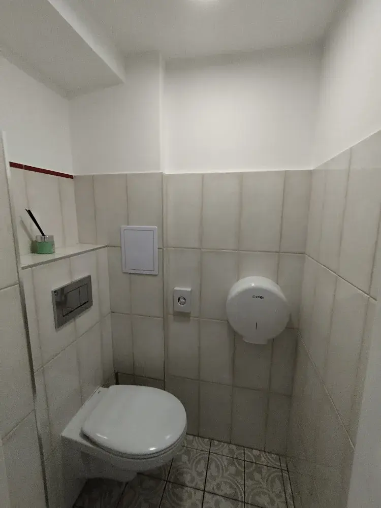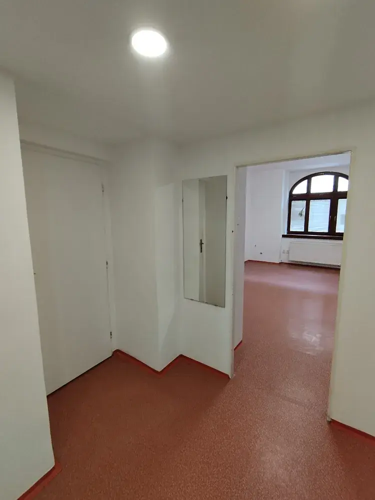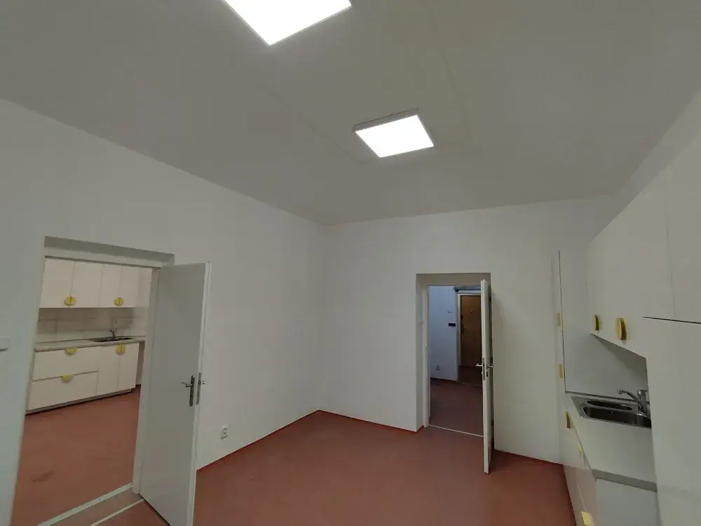 Prostor se nachází v přízemí cihlového patrového domu a je ve velmi dobrém stavu. Dispozici tvoří dvě chodbičky, čtyři místnosti s kuchyňskou linkou - tři místmosti jsou neprůchozí, jedna průchozí, koupelna se sprchovým koutem a dvěma WC.