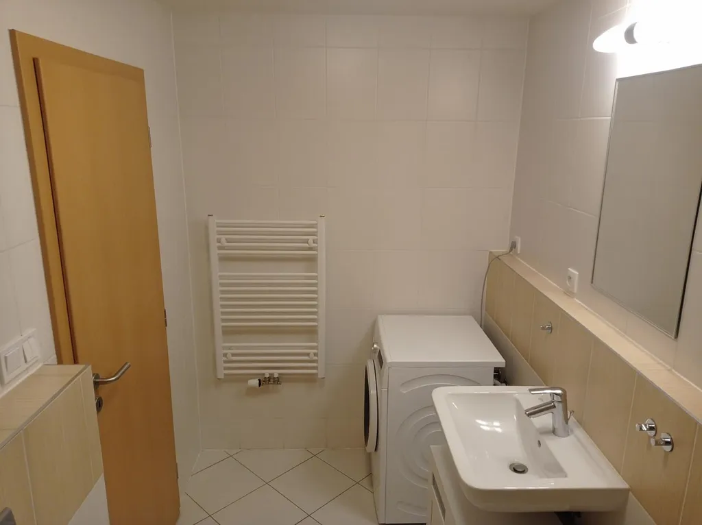 Byt je vybaven (po dohodě může vše v bytě zůstat) - kuchyňská linka - lednice, myčka, trouba, sklokeramická deska, digestoř, vestavěné skříně, rozkládací postel, stůl, pohovka, tv stolek a pračka. V bytě jsou plovoucí podlahy, v koupelně keramická dlažba.
