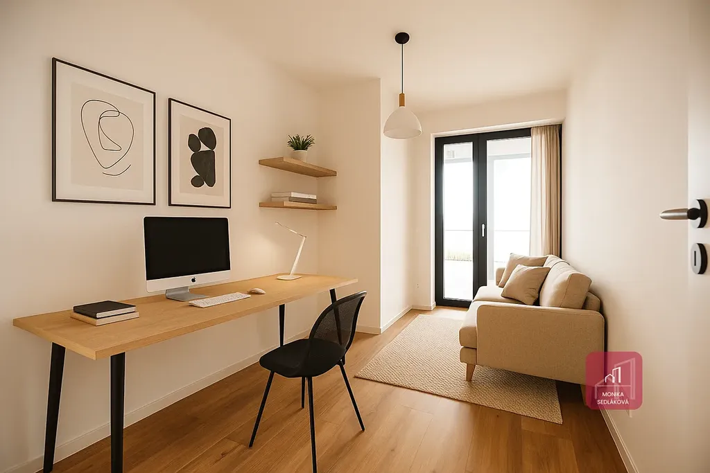 Máte všechny výhody moderní novostavby bez starostí se zahradou a bez dlouhého čekání na stavební povolení. Stačí si vybrat dekory podlah, dveří a obkladů v koupelně a můžete začít bezstarostně žít. K dispozici máte v ceně vlastní prostorný sklad naproti bytu, na výběr dostatek garážových stání za poloviční cenu než v Brně, společnou kočárkárnu, kolárnu a výtah.