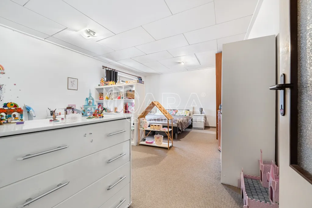 Ve druhém nadzemním podlaží je chodba, nebytový prostor s jedním pokojem a obývací místností s vybavenou kuchyní a vstupem na terasu o výměře 42 m². Dále se zde nachází WC, koupelna, úklidová místnost, dva sklady a pět pokojů s celkovou kapacitou 18 lůžek. Poslední pokoj na konci chodby má navíc vstup na druhou terasu s jižní orientací.
