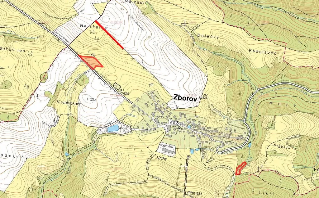 Nabízíme k prodeji pozemky v katastrálním území Zborov na Moravě, okr. Šumperk, zapsané na LV 225. Celková výměra činí 9 806 m², z toho: