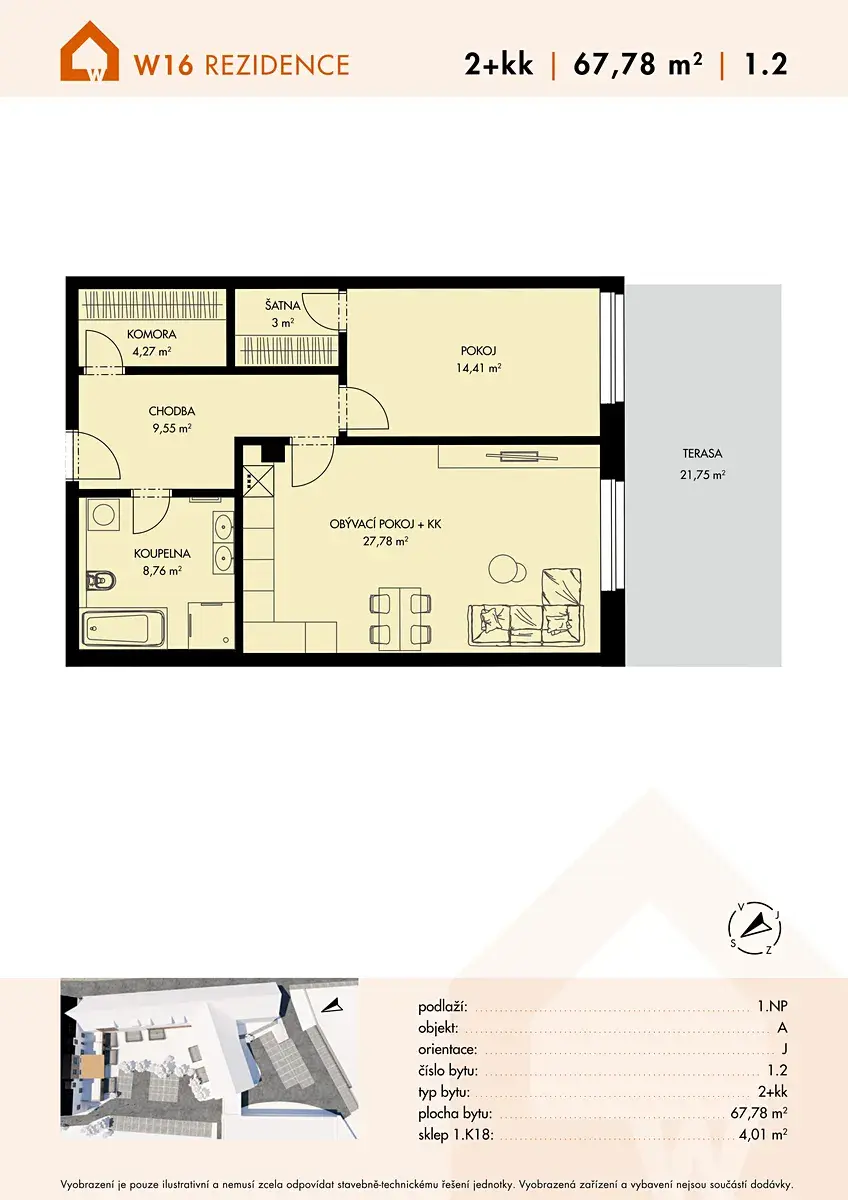Splňte si sen o moderním bydlení v srdci Vysočiny. Nabízíme prostorný byt 2+kk s velkou terasou o ploše 21,75 m² v prestižním projektu Rezidence W16 v Třešti u Jihlavy.