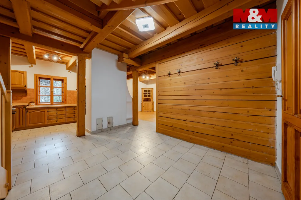 Nabízíme k prodeji roubenku kolaudovanou v roce 2002. Tento rodinný dům s garážovým stáním a udržovanou zahradou stojí v klidné části obce. V 1.NP je obývací pokoj s rohovou kuchyní, krbem a kachlovými kamny, koupelna s WC a technická místnost. Ve 2. NP se nacházejí 3 pokoje, jeden z nich možno využít jako pracovnu nebo šatnu, prostorná koupelna s WC a finská sauna. Kolem domu je okrasná zahrada s parkovacím stáním, která zajišťuje maximální soukromí. Celková plocha pozemku je 662 m2. Dům je dostupný po obecní komunikaci, napojen na elektřinu, obecní vodovod a kanalizaci. Ohřev vody elektrickým bojlerem. Vytápění krbem s průduchy, zajišťujícími rozvod tepla po celém domě, případně kachlovými kamny nebo přímotopy. Konstrukce domu zaručuje nízké provozní náklady. Ideální pro toho, kdo hledá klidné, stylové bydlení. Doporučujeme prohlídku, s financováním rádi pomůžeme.