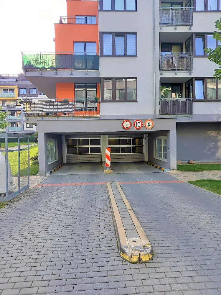 Nabízíme pronájem garážového stání, ulice Laurinova, Praha 5 Stodůlky, Britská čtvrť. Parkovací stání se nachází ve druhém podlaží podzemních garážích bytového komplexu.