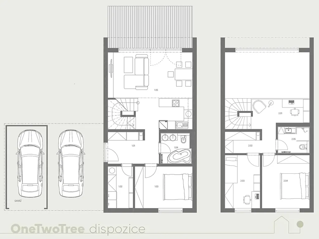 - 2 parkovací stání (1 z nich garážové a 1 kryté) + možnost parkovat další 2 auta před garáží a krytým stáním
