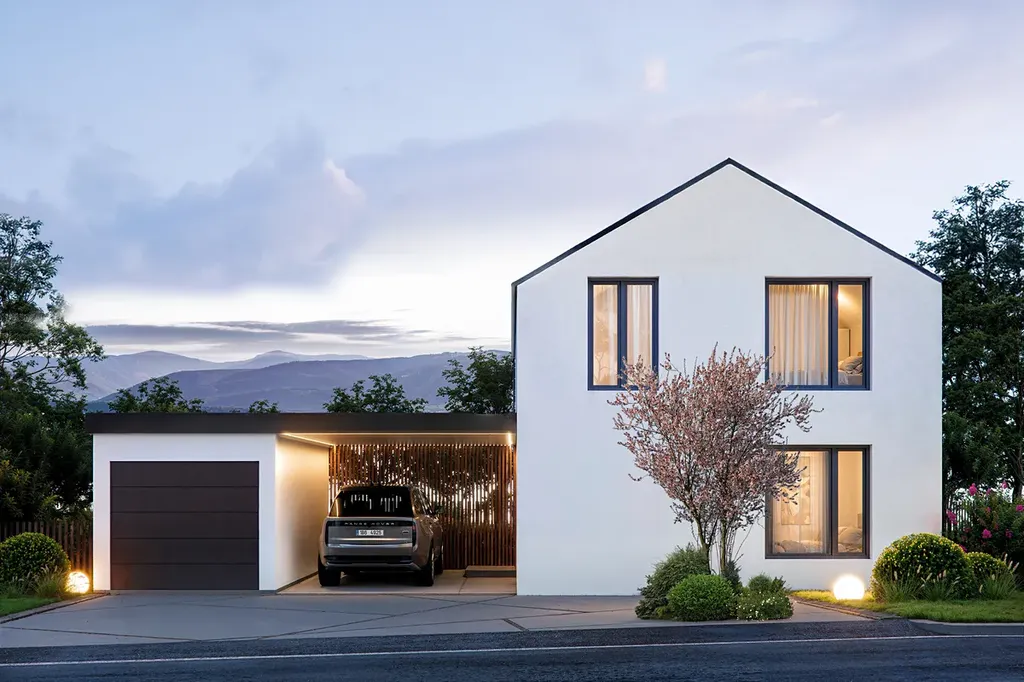 - 2 parkovací stání (1 z nich garážové a 1 kryté) + možnost parkovat další 2 auta před garáží a krytým stáním