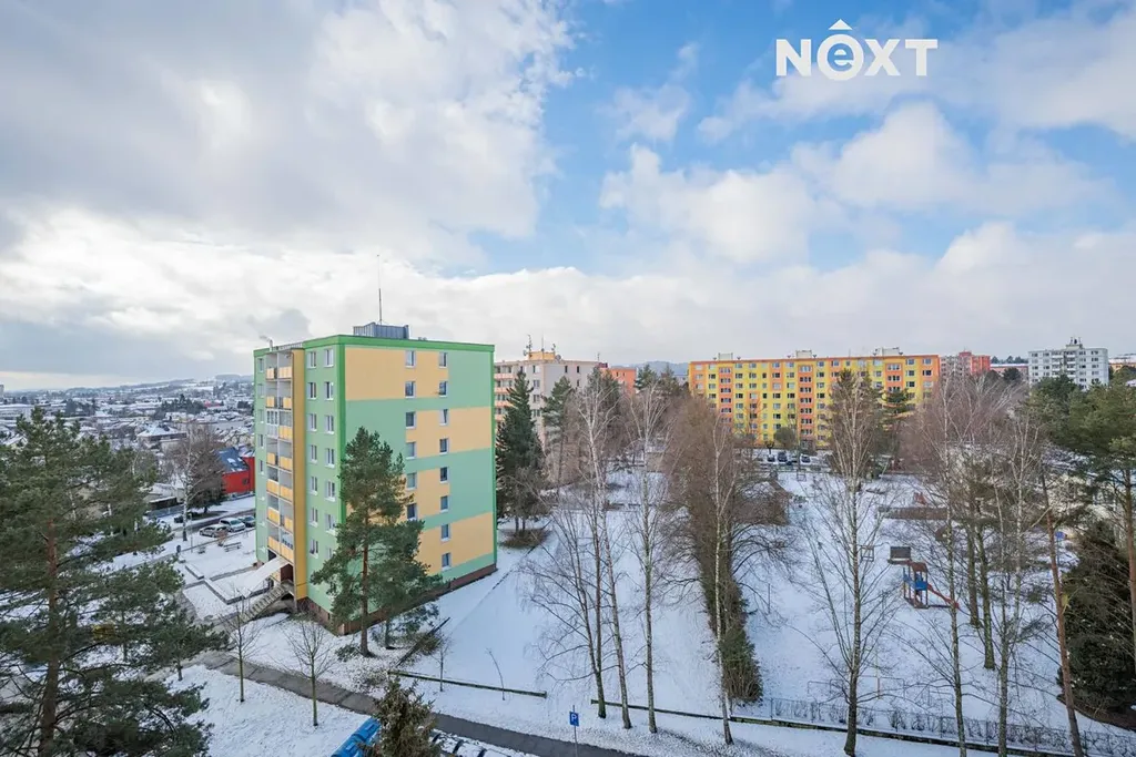 Panelový dům je po částečné revitalizaci: má plastová okna, novou fasádu se zateplením a výtah. Parkování je možné před domem.