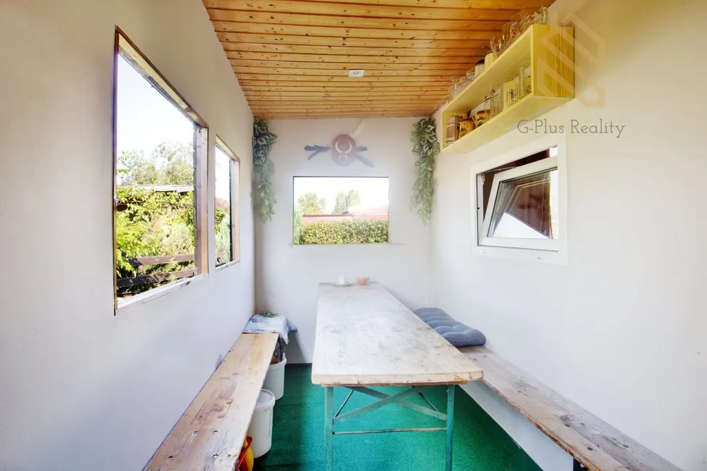 Chata je pro pojená s karavanem, který je zastřešený. Možnost používání sociálního zařízení v kempu.
