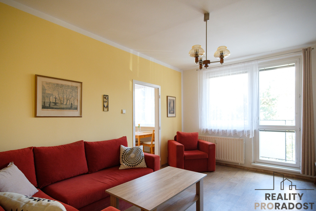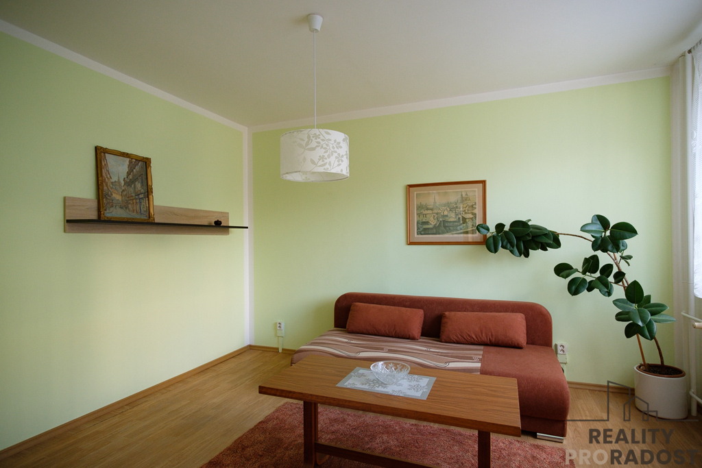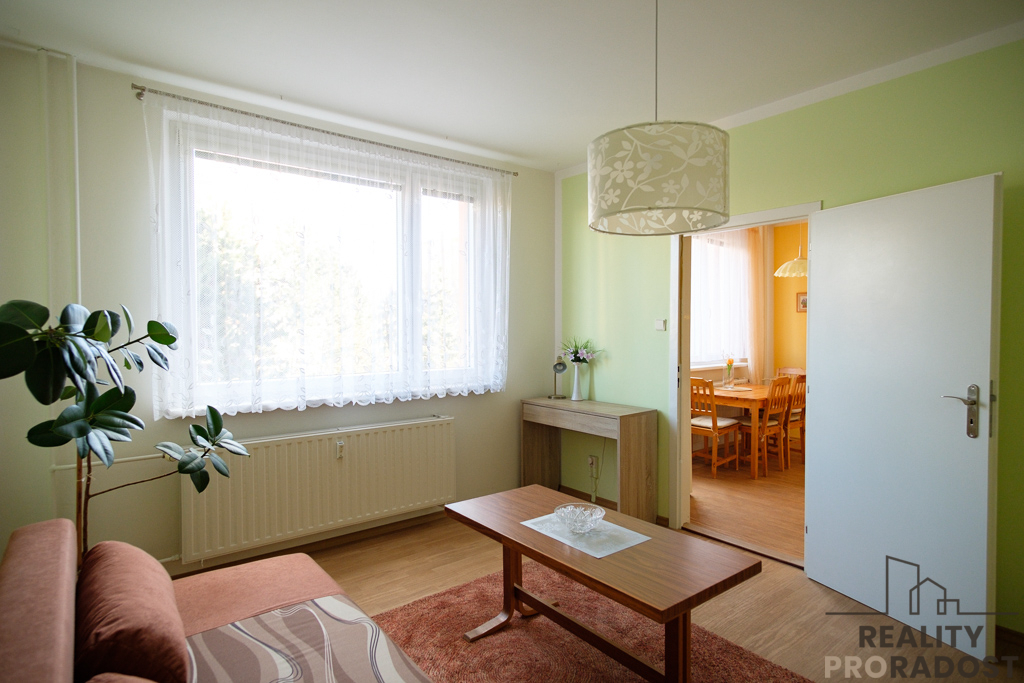 Byt je plně vybaven nábytkem a předností je dostatek úložného prostoru (komora), lodžie i 2 neprůchozí pokoje – vše viz foto a orientační plánek.