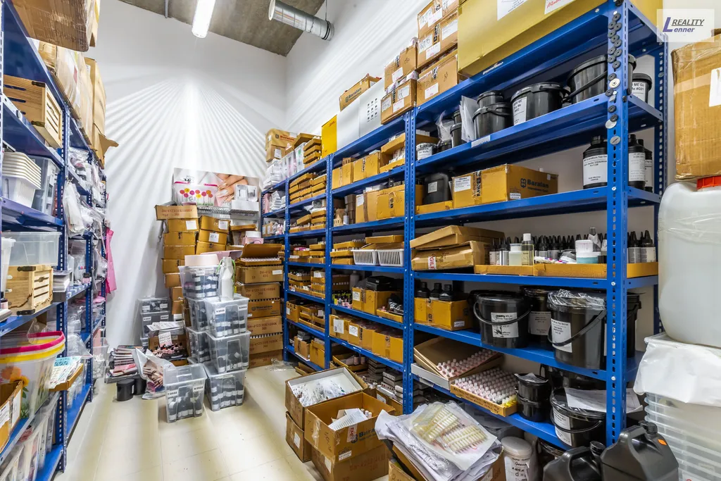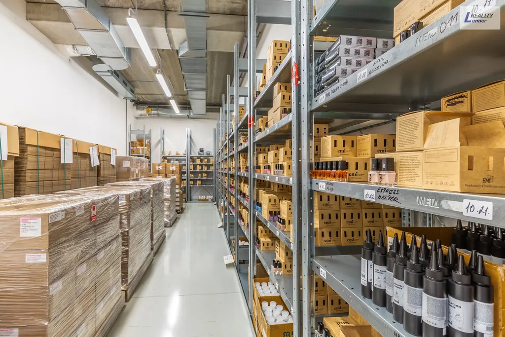 V přízemí areálu cca 1.500 m2 se nacházejí: sklad (hotových výrobků, surovin a obalu, hořlavých materiálů, hořlavých surovin, prostor pro plnění hořlavých materiálu, prostor pro plnění kosmetických přípravků, laboratoř - prostor pro plnění a balení, prostor pro expedici a příjem zboží, jídelna pro zaměstnance, pánské a dámské šatny, sklad inventáře, technické místnosti atd.