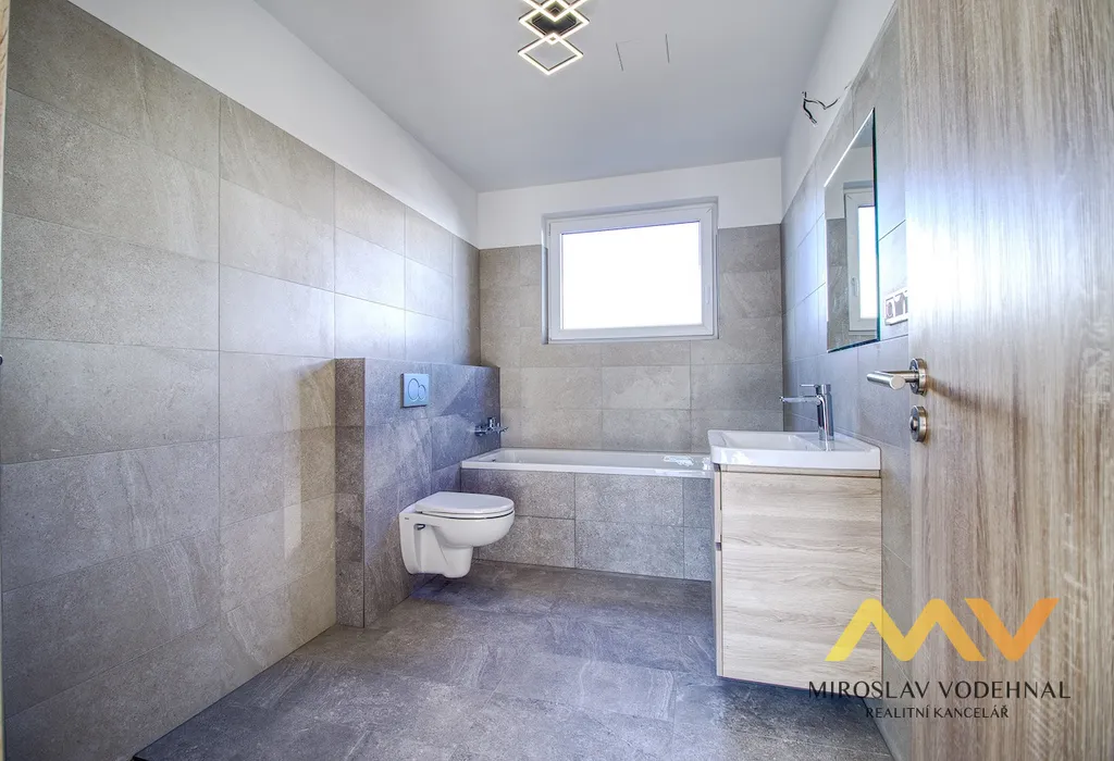 Dominantou domu je velkorysý obývací prostor s kuchyňským koutem o ploše 38 m², který přirozeně navazuje na prostornou terasu a zahradu, čímž vytváří harmonické propojení interiéru s exteriérem. Soukromou část tvoří ložnice o velikosti 21 m² a dva další pokoje (15 m² a 13,5 m²), které mohou sloužit jako dětské pokoje, pracovna či pokoj pro hosty. Praktickým benefitem je samostatná pracovna/šatna o ploše 8,5 m², dvě plnohodnotné koupelny s toaletou, technická místnost a vstupní zádveří.
