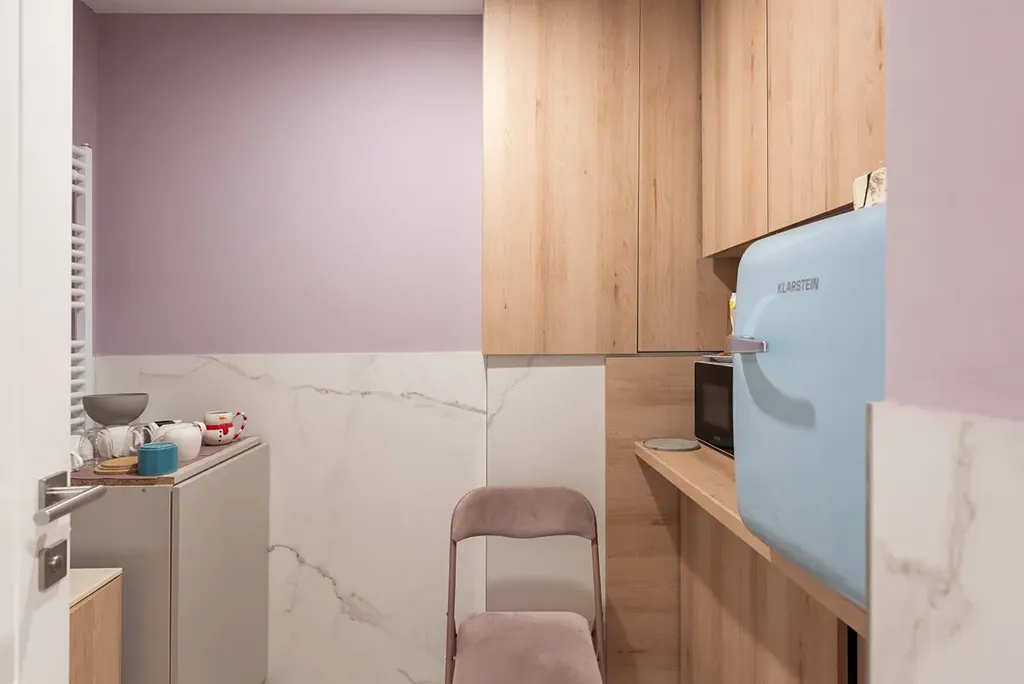 Interiér prošel velmi kvalitní úpravou a působí moderním, čistým a profesionálním dojmem. Aktuálně je prostor využíván jako beauty salon a kadeřnictví, čemuž odpovídá i dispozice – několik samostatných místností pro péči o klienty, otevřenější části s kadeřnickými křesly, zázemí pro personál, kuchyňka, technická místnost i vlastní sociální zařízení. Vše je řešeno s důrazem na detail, estetiku i praktičnost. Světlé podlahy, jemné barevné tóny, dostatek úložných prostor a promyšlené rozdělení jednotlivých částí vytvářejí příjemné prostředí jak pro klienty, tak pro personál.