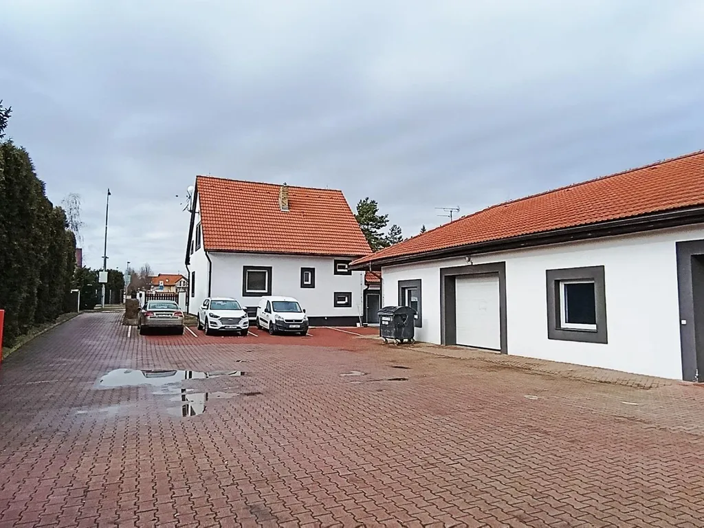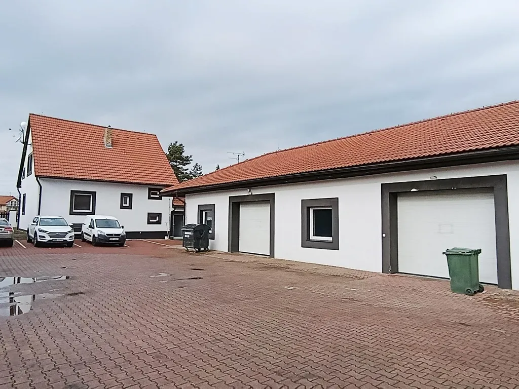 Vjezd do areálu je přímo z hlavní silnice a lze jej využít i pro nákladní dopravu. Na pozemku lze parkovat cca 12 osobních automobilů a před areálem lze využít i malé parkoviště pro zákazníky (4 OA) na obecním pozemku. Celý komplex je obezděn a oplocen. Obě budovy jsou kvalitně zatepleny. Vytápění administrativní části je zajištěno plynovým kotlem s teplovodním rozvodem do radiátorů, skladovací část a vzorkovnu je možno vytápět/temperovat instalovanými klimatizačními jednotkami.