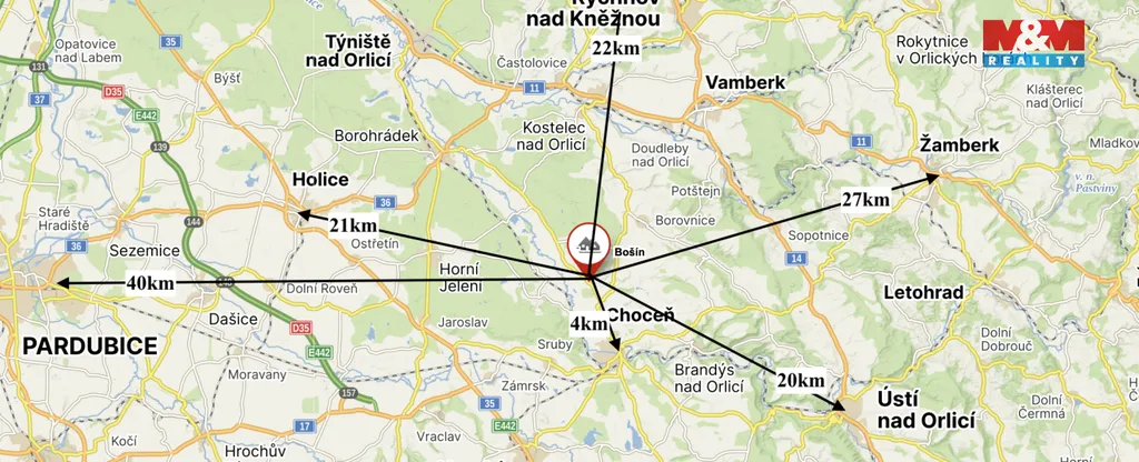 Prodej pole o výměře 1 074 m² v katastrálním území Bošín u Chocně.
