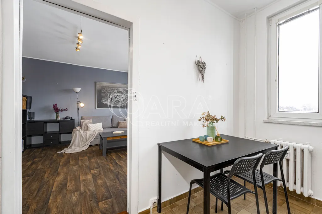 Nabízíme k prodeji byt v osobním vlastnictví o dispozici 2+1 s užitnou plochou 44 m², umístěný v 6. nadzemním podlaží domu s výtahem. Dispozice je praktická, byt působí příjemně světle a vzdušně – velká okna pouští do interiéru dostatek denního světla během celého dne. K bytu také náleží sklepní kóje.