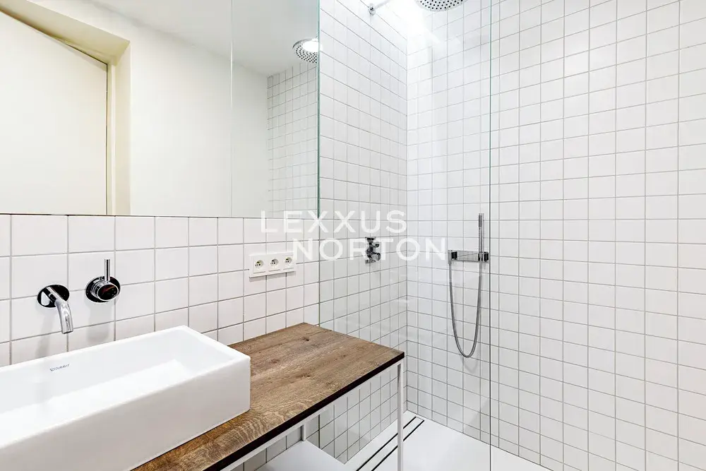 Kuchyňský kout je luxusně vybaven moderními spotřebiči v nejvyšším standardu značky Miele – k dispozici je indukční varná deska, trouba, mikrovlnná trouba, lednice s mrazákem, myčka nádobí a vestavěný kávovar. V koupelně se nachází elegantní walk-in sprcha, ve vstupní chodbě pak vestavěná skříň s policovým systémem a kombinovaná pračka se sušičkou. Ložnice je zařízena vestavěnou skříní a manželskou postelí. V obývacím pokoji se nachází pohodlná sedací souprava a televize. V celém bytě jsou kvalitní parketové podlahy, klimatizace a bezpečnostní systém.