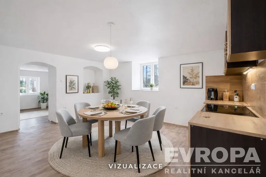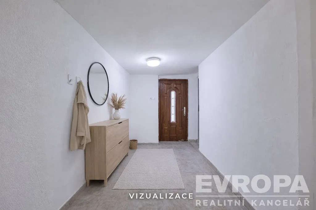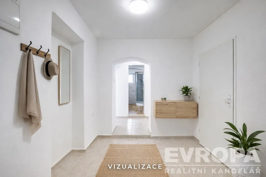 Z předsíně je vstup do krásného kamenného sklepa a na půdu, která nabízí další skvělé užitné prostory.