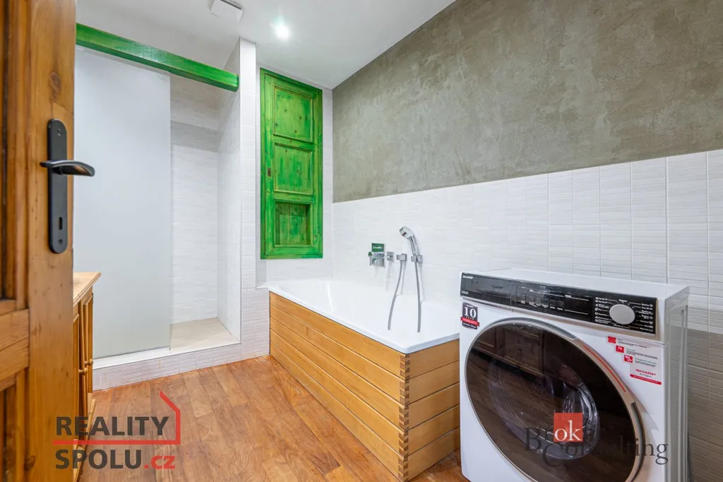 Velkým benefitem je samostatné WC a nadstandardně řešená koupelna – vana i sprchový kout.