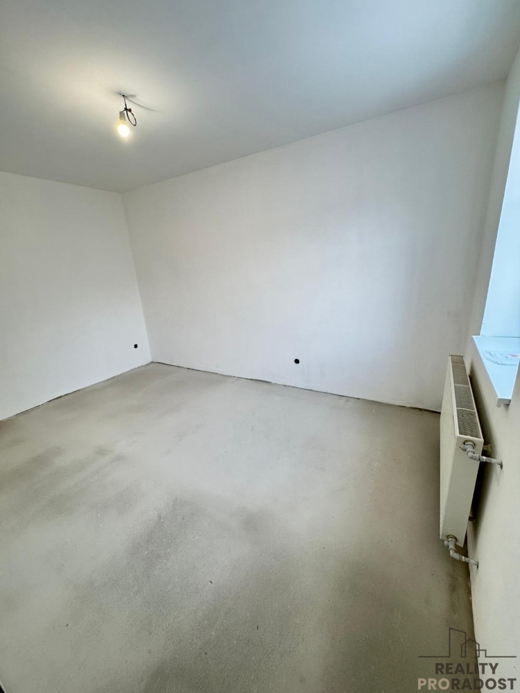 Nabízíme vám výhradně budoucí prodej nově rekonstruovaného bytu o dispozici 3+kk v rodinném domě o třech bytových jednotkách s podílem na domě a pozemku v obci Nová Ves u Litovle. Byt s podlahovou plochou bytu 80 m2 se nachází v přízemí domu a patří k němu i zahrádka vč. kůlny o velikosti 43 m2. Vrchní patro domu je odděleno a je zde vlastní vstup do domu a na zahradu. Konstrukce v 1. patře jsou tvárnice, přízemí domu je smíšené zdivo - pálená cihla a suchá vepřovice. Dům je zateplen polystyrenem. Vytápění bytu novým elektrickým kotlem, na kterém lze ovládat vytápění od 2 kW - 14 kW dle potřeby. Ohřev vody - nový elektrický bojler. V bytě je nově vybudováno - elektřina, topení, voda, vnitřní nové omítky, stupačky, betonová podlaha vylitá nivelační stěrkou, plastová okna, radiátory. Co se týká dalšího dovybavení bytu, tak současný majitel nabízí možnost dobudování pro nového vlastníka a to za velmi příznivou cenu dle výběru materiálu a podobně. Jedná se například o podlahy, kuchyň, koupelnu (počítá se tam s vanou, WC, umyvadlem, sprchovým koutem). Vstupní dveře jsou nové bezpečnostní. Přední strana domu s orientací na Jih jsou kvalitní dřevěná okna dvojskla. Zadní strana domu s orientací na sever jsou plastová okna trojskla. Každý byt v domě má samostatné měřiče. Vrchní patro v domě již obývá velmi příjemná rodina. V současné době se řeší rekonstrukce posledního sousedního bytu v domě, která bude rovněž nabídnuta posléze ke koupi. Součástí koupě bude vlastní parkovací místo podélné s výměrou 2,5 m x 6m, které se ještě bude stavět. Jelikož si projekt vyžádal drobné úpravy, řeší se kolaudace, která bude dokončena v brzké době. Půdorys bytu je přiložen ve fotografiích, je ohraničen zeleně. Jedná se o klidnou lokalitu s dobrou dostupností do okolních měst a vzdáleností do Litovle 6 km, Olomouce 20 km, Mohelnice 17 km. V případě zájmu o další informace ohledně ceny, prodeje a výhodného financování kontaktujte realitního zprostředkovatele. PENB tř. B - velmi úsporná.