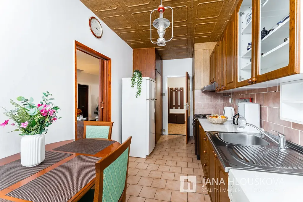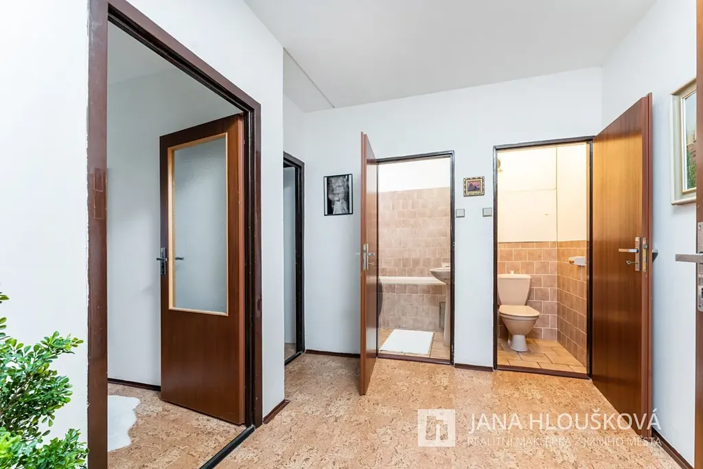Byt má starší zděné jádro, plastová okna a vyštukované stěny, jinak je v převážně původním, ale udržovaném stavu, a tak v něm můžete rovnou bydlet.