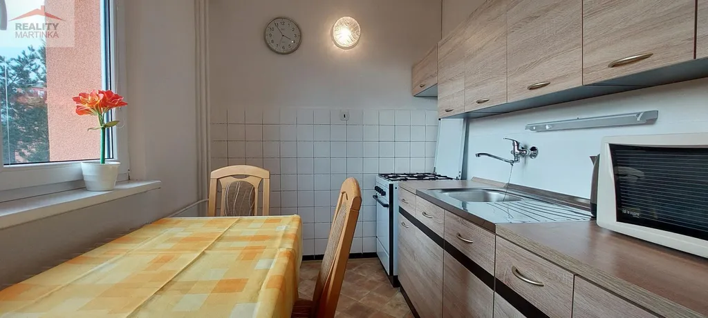 Nabízíme k pronájmu částečně zařízený byt o dispozici 2+1 se zasklenou lodžií ve Valašském Meziříčí na ul. Krátká. Byt se nachází v pátém patře panelového bytového domu s výtahem. V obývacím pokoji je nový koberec, obývací stěna s televizí a sedačka, koupelna je s vanou, umyvadlem a pračkou. V kuchyni je kuchyňská linka s plynovým sporákem a kuchyňský stůl se židlemi. V chodbě jsou původní vestavěné skříně s botníkem. Cena nájmu 11.500 Kč/měs. + zálohy na služby 3.893 Kč/měs. + elektřina cca 800 Kč/měs. + plyn cca 300 Kč/měs. Kauce ve výši 23.000 Kč. Pronajímatel upřednostňuje nájemce nekuřáka, bez domácích zvířat. K pronájmu byt 2+1 se zasklenou lodžií ve Valašském Meziříčí.