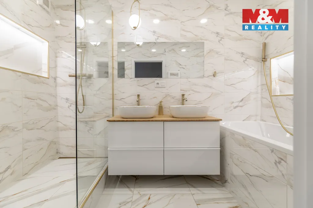 Exkluzivně nabízíme k prodeji byt v osobním vlastnictví o velikosti 4+1, s lodžií, o celkové výměře 86 m2, po velice pečlivé, designové, do detailu zhotovené rekonstrukci. Byt se skládá z kuchyně s vestavnými spotřebiči a velkým množstvím úložných skříněk, na ni navazujícího prostorného obývacího pokoje s jídelním stolem a dále tří ložnic, z nichž první slouží jako manželská ložnice, druhá jako dětský pokoj a třetí má nyní funkci dámské šatny s kosmetickým stolkem. Velkoryse pojatá koupelna disponuje dvěma umyvadly, sprchovým koutem i vanou. Hned vedle koupelny je samostatné WC. Další úložné prostory se pak nacházejí v předsíni, tak jako i dvě menší komory, ve kterých jsou umístěny pračka se sušičkou a v druhé technické zázemí. K dispozici je také nadstandardně velký sklep s možností uložení kočárku, kol atd. Dostupnost MHD, tak jako blízkost školek, škol i veškerých služeb je samozřejmostí.