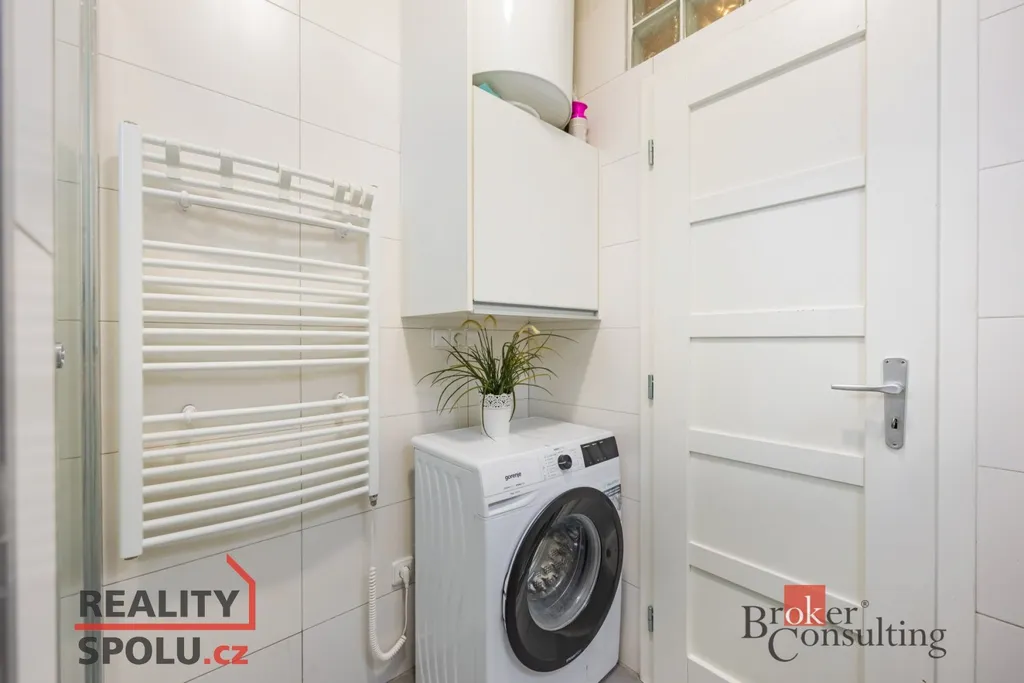 Obývací část s kuchyní vytváří příjemný společný prostor pro každodenní fungování i posezení s přáteli. Kuchyňská linka je prakticky uspořádaná a navazuje na jídelní kout. Samostatný pokoj nabízí dostatek místa pro ložnici, případně kombinaci ložnice a pracovny. Koupelna je nově obložená moderním obkladem, působí čistě a současně a je vybavena sprchovým koutem, toaletou a prostorem pro pračku.