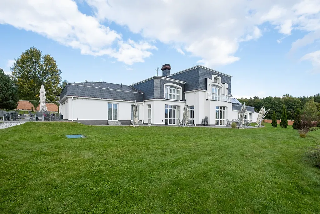 V exkluzivním zastoupení majitele Vám nabízíme příležitost koupě luxusního rezidenčního objektu, který se rozkládá na pozemcích o celkové výměře 18.858 m2, v bezprostřední blízkosti lesů přírodního parku Hřebeny a Vackova rybníka v Rosovicích u Dobříše.